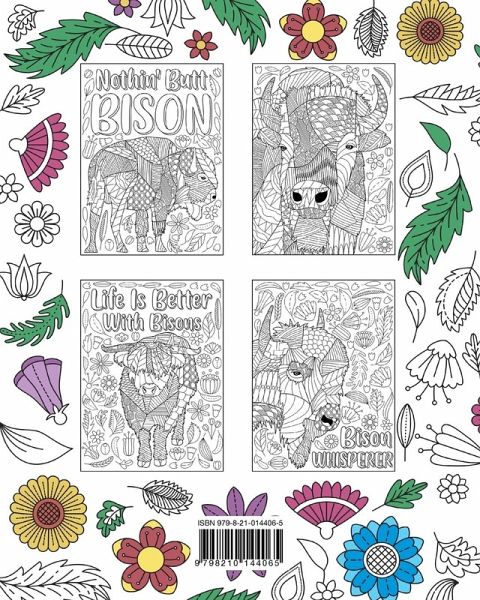 Bison Coloring Book, Coloring Books for Adults, Gifts for Painting Lover, Bison Mandala Coloring Pages, Wildlife Coloring Book, Bison Print It's was made for Bison lovers or someone who just likes to relax coloring. Bison in zentangle pattern style with heartwarming quotes. Makes the perfect gift for your friends who are Bison lover. This book has a total of 42 pages, contains 1 inner cover, 10 different designs with the copy for two chances to coloring, and 21 blank pages for your freestyle drawing.