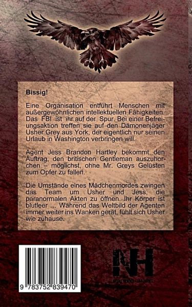 EEs handelt sich um eine Neuauflage des bereits erschienenen Buches im neuen Gewand. Gay Romance, Gay SuspenseUsher Grey ist Dämonenjäger. Doch das ist nicht alles: Seine unkonventionelle Art macht Spaß, sie ist sexy, humorvoll und voller Spannung. In dieser Kooperation trifft man zusätzlich auf Sydney Staffords Charaktere aus dem "Omega Code". Die Agenten Raven und Jess sind mit von der Partie, sowie auch Jerry, der hier seinem Schicksal begegnet.Gemeinsam ziehen sie in den Kampf gegen die Mächte des Bösen ... nachdem auch das FBI nicht länger die Augen vor der magischen Welt verschließen kann.Bissig!Eine Organisation entführt Menschen mit außergewöhnlichen intellektuellen Fähigkeiten. Das FBI ist ihr auf der Spur. Bei einer Befreiungsaktion treffen sie auf den Dämonenjäger Usher Grey aus York, der eigentlich nur seinen Urlaub in Washington verbringen will.Agent Jess Brandon Hartley bekommt den Auftrag, den britischen Gentleman auszuhorchen. Möglichst, ohne Mr. Greys Gelüsten zum Opfer zu fallen. Aber Usher hat auch eine andere Seite, die Agent Jerry Walker unbeabsichtigt herauskitzelt. Schon bald herrscht ein Chaos der Gefühle.Die Umstände eines Mädchenmordes zwingen das Team um Usher und Jess, die paranormalen Akten zu öffnen. Ihr Körper ist blutleer.Während das Weltbild der Agenten immer weiter ins Wanken gerät, fühlt sich Usher wie zuhause.Ihr Gegenspieler Léon de Lorca Alvarez beweist ungewöhnliche Fähigkeiten und verfolgt einen perfiden Plan.Usher Grey 1-FeuerteufelUsher Grey 2-Zwischen Himmel und HölleUsher Grey 3-Bissig (mit Sydney Stafford)Usher Grey 4-Götterdämmerung