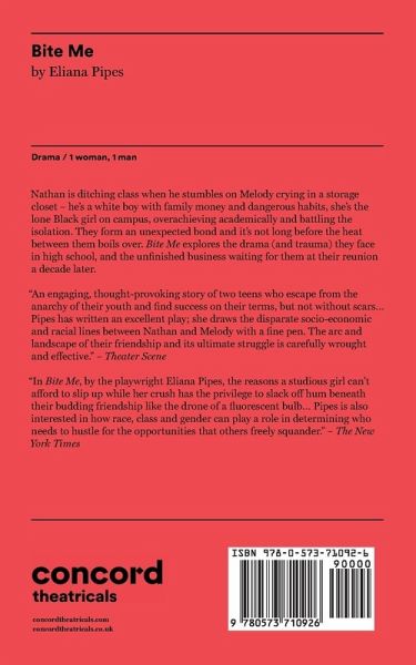 Nathan is ditching class when he stumbles on Melody crying in a storage closet - he's a white boy with family money and dangerous habits, she's the lone Black girl on campus, overachieving academically and battling the isolation. They form an unexpected bond and it's not long before the heat between them boils over. Bite Me explores the drama (and trauma) they face in high school, and the unfinished business waiting for them at their reunion a decade later.