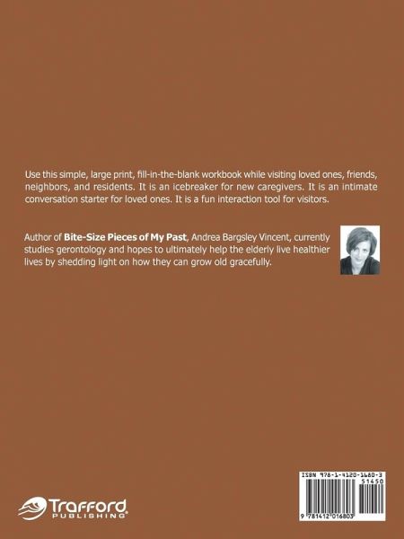 You don't have to be a novelist to share your story with others. With the direction of Bite-Size Pieces of My Past, you can jot down the most memorable people, places, and things in a convenient, professional format to share with family and friends. It also contains practical, simple guidelines for moving one step further toward writing your own stories about those pieces of your past that you find particularly interesting. So, whether you simply want a place to collect your opinions and thoughts, or a guidebook for preserving cherished memories, Bite-Size Pieces of My Past will be a cherished keepsake for many future generations.