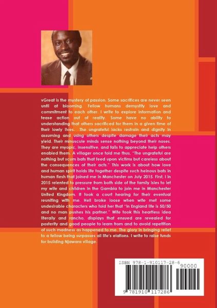 Great is the mystery of passion. Sacrifices are never seen until at blooming.I write to explore information and tease action out of reality.Some lack ability understanding others sacrificed for them in a given time. The ungrateful lacks dignity in assuming and using others despite damage their acts may yield. Their small brains senses nothing beyond their noses. "The ungrateful are scum bats that feed upon victims and careless consequences of their acts." This is about how love and human holds life together despite such heinous bats in human flesh that joined a friend in Manchester. Hell broke loose when his wife met undesirable characters who told her "in England life is 50/50 and no man pushes his partner." His Wife took this heartless idea literally and ranchor displays that ensued are revealed for posterity and people to learn from and avoid repetition of such madness as happened. The glory in bringing relief to others surpasses all life's elation. I write to raise funds for building Njawara village.
