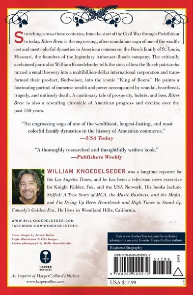 “Bitter Brew deftly chronicles the contentious succession of kings in a uniquely American dynasty. You’ll never crack open a six again without thinking of this book.” —John Sayles, Director of Eight Men Out and author of A Moment in the Sun The creators of Budweiser and Michelob beers, the Anheuser-Busch company is one of the wealthiest, most colorful and enduring family dynasties in the history of American commerce. In Bitter Brew, critically acclaimed journalist William Knoedelseder tells the riveting, often scandalous saga of the rise and fall of the dysfunctional Busch family—an epic tale of prosperity, profligacy, hubris, and the dark consequences of success that spans three centuries, from the open salvos of the Civil War to the present day.