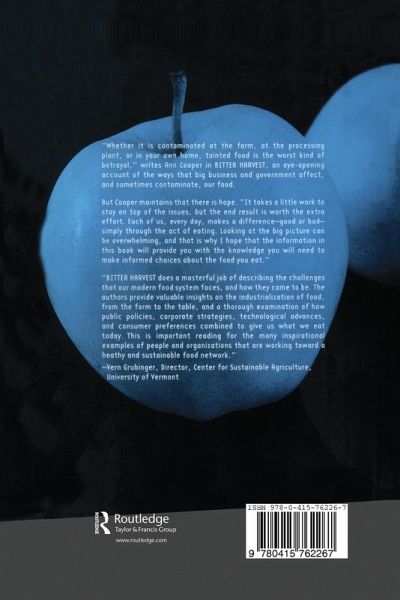 The history of food is not as straightforward as it may seem. Food isn't just food. It is ritual, tradition and memory. So begins Ann Cooper's groundbreaking new book on the history of sustenance. Cooper, a renowned chef and graduate of New York's famed Culinary Institute of America, expertly guides us from the roots of agriculture in North America through the profound changes initiated by the Industrial Revolution, all the way up to the present day, offering analyses of recent controversies such as Europe's campaign against Frankenstein food and the genetic engineering of plants and animals in the United States. Throughout, Cooper takes both a macro and micro approach, examining the effect politics, technology, war, international trade and agribusiness have had on the world's food supply, as well as the changing social patterns which have made a family meal at the table almost a relic of the past. Did you know? · 80% of chicken has salmonella. · By the year 2010, 95 percent of items bought at the grocery store may be consumed within 20 minutes of getting them home. · Cancer researchers believe that over one third of all future cancers will be diet-related -- roughly the same proportion now attributable to smoking. Passionate, political, informed and engaging, Bitter Harvest is filled with fascinating facts and anecdotes. Cooper offers a comprehensive analysis of the issue of sustainability, arguing persuasively why we must begin to change everything from the way food is shipped to the basic components of our diets. Touching on virtually every aspect of the food culture, Bitter Harvest is a vibrant example of the emergence of the chef as a political voice to be reckoned with. A food manifesto for the new millennium, it is a must-read for anyone concerned with health, nutrition and the future of our planet. You will never look at your dinner plate in quite the same way again.