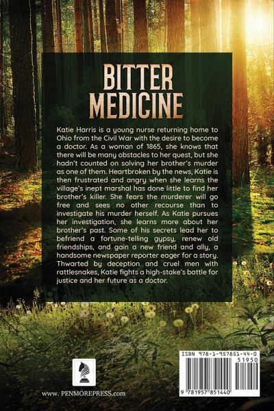 Katie Harris is a young nurse returning home to Ohio from the Civil War with the desire to become a doctor. As a woman of 1865, she knows that there will be many obstacles to her quest, but she hadn't counted on solving her brother's murder as one of them. Heartbroken by the news, Katie is then frustrated and angry when she learns the village's inept marshal has done little to find her brother's killer. She fears the murderer will go free and sees no other recourse than to investigate his murder herself. As Katie pursues her investigation, she learns more about her brother's past. Some of his secrets lead her to befriend a fortune-telling gypsy, renew old friendships, and gain a new friend and ally, a handsome newspaper reporter eager for a story. Thwarted by deception and cruel men with rattlesnakes, Katie fights a high-stake's battle for justice and her future as a doctor.