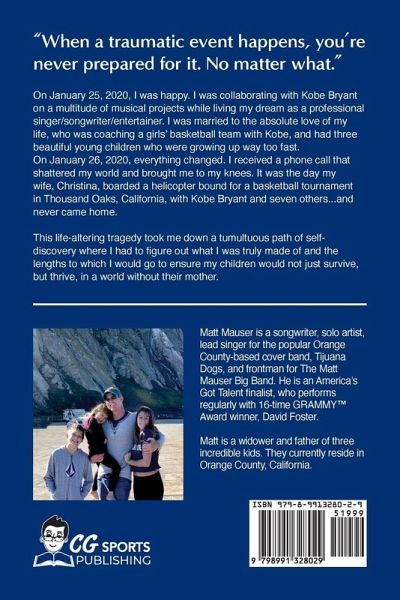 On January 25, 2020, I was happy. I was collaborating with Kobe Bryant on a multitude of musical projects while living my dream as a professional singer/songwriter/entertainer. I was married to the absolute love of my life, who was coaching a girls' basketball team with Kobe, and had three beautiful young children who were growing up way too fast. On January 26, 2020, everything changed. I received a phone call that shattered my world and brought me to my knees. It was the day my wife, Christina, boarded a helicopter bound for a basketball tournament in Thousand Oaks, California, with Kobe Bryant and seven others...and never came home. This life-altering tragedy took me down a tumultuous path of self-discovery where I had to figure out what I was truly made of and the lengths to which I would go to ensure my children would not just survive, but thrive, in a world without their mother.