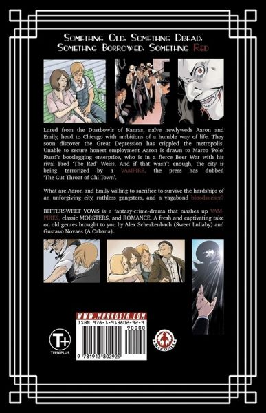 Lured from the Dustbowls of Kansas, naive newlyweds, Aaron and Emily, head to Chicago with humble ambitions, but the Great Depression has crippled the metropolis. Unable to secure honest employment, Aaron is drawn into Marco 'Polo' Russi's bootlegging enterprise, who is in a fierce Beer War. And the city is being terrorized by a VAMPIRE, the press has dubbed 'The Cut-Throat of Chi-Town'. What are Aaron and Emily willing to sacrifice to survive the hardships of an unforgiving city, ruthless gangsters, and a vagabond bloodsucker. BITTERSWEET VOWS is a fantasy-crime-drama that mashes up VAMPIRES, MOBSTERS, and ROMANCE. A fresh and captivating take on old genres brought to you by Alex Scherkenbach (Sweet Lullaby) and Gustavo Novaes (A Cabana).
