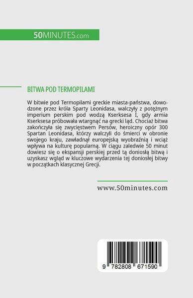 W bitwie pod Termopilami greckie miasta-pästwa, dowodzone przez króla Sparty Leonidasa, walczy¿y z pot¿¿nym imperium perskim pod wodz¿ Kserksesa I, gdy armia Kserksesa próbowäa wtargn¿¿ na grecki l¿d. Chociä bitwa zako¿czy¿a si¿ zwyci¿stwem Persów, heroiczny opór 300 Spartan Leonidasa, którzy walczyli do ¿mierci w obronie swojego kraju, zaw¿adn¿¿ europejsk¿ wyobräni¿ i wci¿¿ wp¿ywa na kultur¿ popularn¿. W ci¿gu zaledwie 50 minut dowiesz si¿ o ekspansji perskiej przed t¿ donios¿¿ bitw¿ i uzyskasz wgl¿d w kluczowe wydarzenia tej donios¿ej bitwy w pocz¿tkach klasycznej Grecji. Ta prosta i pouczaj¿ca ksi¿¿ka zawiera dok¿adne omówienie wydarze¿ prowadz¿cych do bitwy pod Termopilami, w tym pierwszej i drugiej wojny perskiej oraz nieudanej rewolty jo¿skiej. Zawiera równie¿ biografie kluczowych dowódców i liderów, w tym Leonidasa I, Kserksesa I i Mardoniusza, cenne wprowadzenie do kontekstu spo¿ecznego i politycznego oraz ocen¿ militarnych i politycznych konsekwencji bitwy, daj¿c ci wszystkie istotne informacje na temat tego legendarnego wydarzenia.