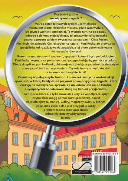 Mäe kieszonkowe skarby, wielkie rodzinne tajemnice i babcia, której mi¿o¿¿ zmienia wszystko. Biuro Detektywistyczne Babci Pocket to ciep¿a, pe¿na magii i wzrusze¿ opowie¿¿ dla dzieci, która pokazuje, ¿e najwi¿ksze skarby ukrywaj¿ si¿ w zwyczajnych chwilach sp¿dzonych razem. Kiedy pewnego dnia wnuczka odkrywa magiczny ¿wiat drobiazgów w kieszeni swojej babci, rozpoczyna si¿ podró¿ pe¿na wyobräni, ¿miechu i g¿¿bokich przemy¿le¿. Czy przedmioty mog¿ opowiadä historie? Czy wspomnienia zamkni¿te w mäych skarbach mog¿ stä si¿ mostem ¿¿cz¿cym pokolenia? To ksi¿¿ka, która: Bawi i uczy - podkre¿laj¿c warto¿¿ mi¿o¿ci, wi¿zi rodzinnych i rado¿ci z mäych rzeczy. Wzrusza i inspiruje - przypominaj¿c o sile wspomnie¿ i m¿dro¿ci, któr¿ nios¿ nasi dziadkowie. Pobudza wyobräni¿ - pokazuj¿c dzieciom, ¿e magia jest tu¿ obok, wystarczy j¿ dostrzec. Doskonäa lektura dla dzieci, ¿¿cz¿ca warto¿ci edukacyjne z pi¿kn¿ histori¿. Idealna do wspólnego czytania z rodzicami lub dziadkami, wzmacniaj¿ca mi¿dzypokoleniowe wi¿zi. Magia wspomnie¿, ciep¿o mi¿o¿ci i kieszenie pe¿ne historii - razem z Babci¿ Pocket odkryj, co naprawd¿ jest najwäniejsze