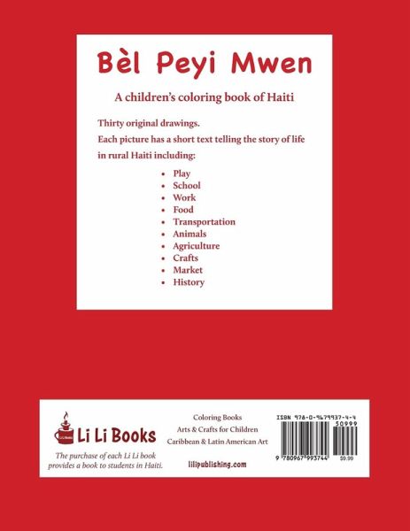 Lively pictures and charming text give a glimpse of everyday life in Haiti. A children's coloring book of Haiti with thirty original drawings. Each picture has a short text telling the story of life in rural Haiti.