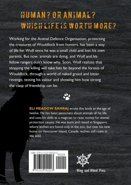 Working for the Animal Defence Organisation, protecting the creatures of Wouldlock from hunters, has been a way of life for Wolf since he was a small child and lost his own parents. But now, animals are dying, and Wolf and his fellow rangers don't know why. Soon, Wolf realizes that stopping the killing will take him far beyond the forests of Wouldlock, through a world of naked greed and bitter revenge, testing his valour and showing him how strong the clasp of friendship can be. This fantasy-adventure novel from a 12-year-old author will appeal to young-adult readers.