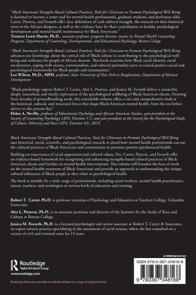 Black Americans' Strengths-Based Cultural Practices: Tools for Clinicians to Promote Psychological Well-Being uses historical, social, scientific, and psychological research to detail how mental health professionals can use the cultural practices of Black Americans and communities to promote positive psychosocial health.