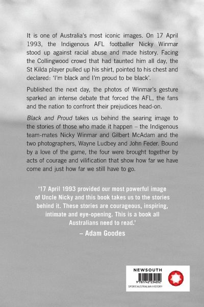 It is one of Australia’s most iconic images. On 17 April 1993, the Indigenous AFL footballer Nicky Winmar stood up against racial abuse and made history. Facing the Collingwood crowd that had taunted him all day the St Kilda player pulled up his shirt, pointed to his chest and declared: ‘I’m black and I’m proud to be black’. Published the next day, the photos of Winmar’s gesture sparked an intense debate that forced the AFL, the fans and the nation to confront their prejudices head-on. Black and Proud takes us behind the searing image to the stories of those who made it happen – the Indigenous team-mates Nicky Winmar and Gilbert McAdam and the two photographers, Wayne Ludbey and John Feder. Bound by a love of the game, the four were brought together by acts of courage and vilification that show how far we have come and just how far we have to go.