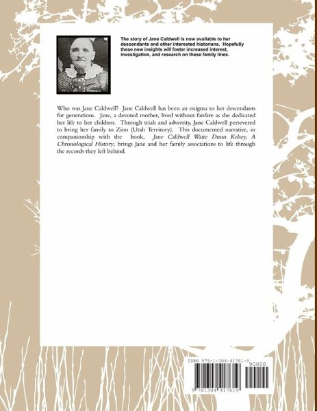 This documented narrative tells the story of Jane Caldwell born 27 March 1808/1809. It also provides biographical sketches of her parents, spouses, siblings, and children. Jane was born in Sandy Lake township, Mercer County, Pennsylvania. She joined the Church of Jesus Christ of Latter-day Saints in 1842 and later moved to Utah.