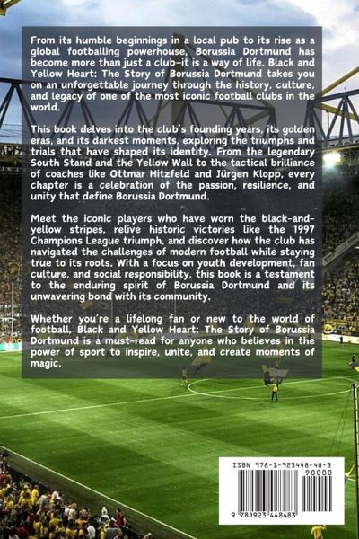 From its humble beginnings in a local pub to its rise as a global footballing powerhouse, Borussia Dortmund has become more than just a club-it is a way of life. Black and Yellow Heart: The Story of Borussia Dortmund takes you on an unforgettable journey through the history, culture, and legacy of one of the most iconic football clubs in the world. This book delves into the club's founding years, its golden eras, and its darkest moments, exploring the triumphs and trials that have shaped its identity. From the legendary South Stand and the Yellow Wall to the tactical brilliance of coaches like Ottmar Hitzfeld and Jürgen Klopp, every chapter is a celebration of the passion, resilience, and unity that define Borussia Dortmund. Meet the iconic players who have worn the black-and-yellow stripes, relive historic victories like the 1997 Champions League triumph, and discover how the club has navigated the challenges of modern football while staying true to its roots. With a focus on youth development, fan culture, and social responsibility, this book is a testament to the enduring spirit of Borussia Dortmund and its unwavering bond with its community. Whether you're a lifelong fan or new to the world of football, Black and Yellow Heart: The Story of Borussia Dortmund is a must-read for anyone who believes in the power of sport to inspire, unite, and create moments of magic.