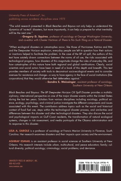 Black Beaches and Bayous: The BP Deepwater Horizon Oil Spill Disaster provides a multidisciplinary, international perspective on one of the major disaster events within the United States during the last ten years. Scholars from various disciplines including sociology, political science, ecology, psychology, and criminal justice investigate the different components and issues associated with this event. The contributors address topics such as the social and historical context of fossil fuel use, steps within the technological disaster process, and similarities and differences between this disaster and other technological disasters. They also discuss the social and psychological impacts on Gulf Coast residents, the transformation of natural ecological systems, changes in risk assessment, and media portrayals of the Obama administration and its response to this disaster.