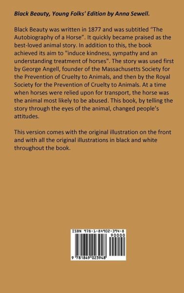 Black Beauty was written in 1877 and was subtitled "The Autobiography of a Horse". It quickly became known as the best-loved animal story. In addition to this, the book achieved its aim to "induce kindness, sympathy and an understanding treatment of horses". The story was used first by George Angell, founder of the Massachusetts Society for the Prevention of Cruelty to Animals, and then by the Royal Society for the Prevention of Cruelty to Animals. At a time when horses were relied upon for transport, the horse was the animal most likely to be abused. This book, by telling the story through the eyes of the animal, changed people's attitudes. This abridged version comes with the original illustration on the front and with all the original illustrations in black and white throughout the book.