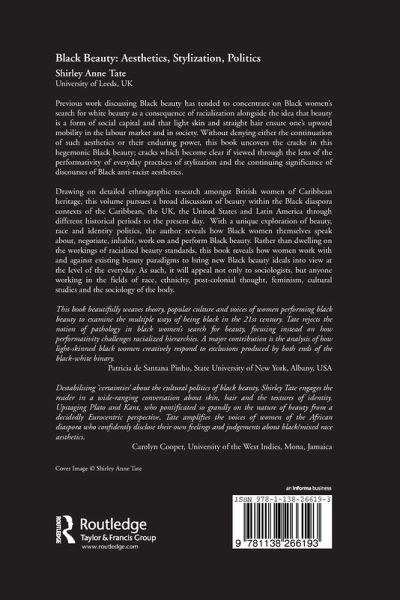 Combining rich ethnographic research amongst Black British women of Caribbean heritage, with a discussion of the broader 'Black Atlantic' context, Shirley Tate offers a unique exploration of beauty, race and identity politics, revealing how Black women themselves speak about, negotiate, inhabit, work on and perform Black beauty.