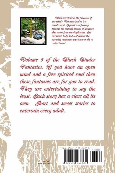 Volume 5 of the Black Binder Fantasies. If you have an open mind and a free spirited soul then these fantasies are for you to read. They are entertaining to say the least. Each story has a class all its own. Short and sweet stories to entertain every adult.