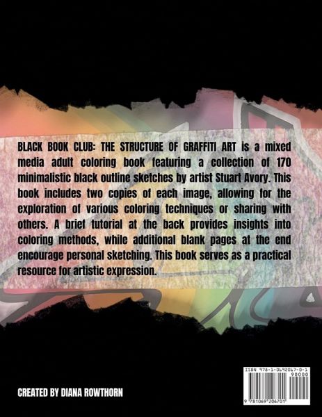 BLACK BOOK CLUB: The Structure of Graffiti Art Dive into the vibrant world of graffiti art with **BLACK BOOK CLUB: The Structure of Graffiti Art**, a unique mixed media book featuring 170 pages of minimalistic black outline sketches. This book provides two copies of each design, allowing you to experiment with different colors, techniques, or share the creative journey with a friend. At the back, you'll find a helpful tutorial that offers insights into various artistic methods, enhancing your creative approach. Plus, additional blank pages at the end invite you to explore your own sketches and creations. Whether you're an experienced artist or simply looking to relax and express yourself, **BLACK BOOK CLUB** is an inspiring resource that celebrates the structure and creativity of graffiti art. Perfect for use with metallic markers, paint pens, and other mixed media materials!