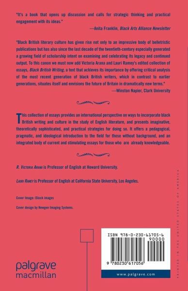'Black British literary culture has given rise not only to an impressive body of bellistristic publications but has also since the last decade of the twentieth-century especially generated a growing field of scholarship intent on examining and celebrating its legacy and continued output. To this canon we must now add Victoria Arana and Lauri Ramey's edited collection of essays Black British Writing, a text that achieves its importance by offering critical analysis of the most recent generation of black British writers, which in contrast to earlier generations, situates itself and envisions the future of Britain in dramatically new terms.' - Winston Napier, Clark University, USA