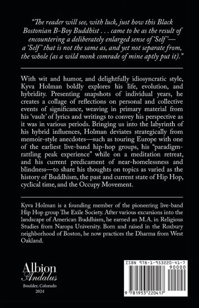 With wit and humor, and delightfully idiosyncratic style, Kyva Holman boldly explores his life, evolution, and hybridity. Presenting snapshots of individual years, he creates a collage of reflections on personal and collective events of significance, weaving in primary material from his 'vault' of lyrics and writings to convey his perspective as it was in various periods. Bringing us into the labyrinth of his hybrid influences, Holman deviates strategically from memoir-style anecdotes-such as touring Europe with one of the earliest live-band hip-hop groups, his "paradigm-rattling peak experience" while on a meditation retreat, and his current predicament of near-homelessness and blindness-to share his thoughts on topics as varied as the history of Buddhism, the current state of Hip Hop, cyclical time, and the Occupy Movement.