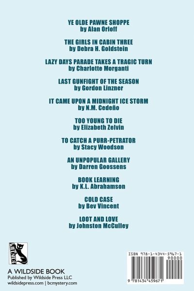 Black Cat Mystery Magazine #12 is a special issue devoted to the Cozy genre. Here are 10 brand new tales in the best Cozy tradition-plus a classic reprint from Johnston McCulley, creator of Zorro! Included are: YE OLDE PAWNE SHOPPE, by Alan OrloffTHE GIRLS IN CABIN THREE, by Debra H. GoldsteinLAZY DAYS PARADE TAKES A TRAGIC TURN, by Charlotte MorgantiLAST GUNFIGHT OF THE SEASON, by Gordon LinznerIT CAME UPON A MIDNIGHT ICE STORM, by N.M. CedeñoTOO YOUNG TO DIE, by Elizabeth ZelvinTO CATCH A PURR-PETRATOR, by Stacy WoodsonAN UNPOPULAR GALLERY, by Darren GoossensBOOK LEARNING, by K.L. AbrahamsonCOLD CASE, by Bev VincentLOOT AND LOVE, by Johnston McCulley