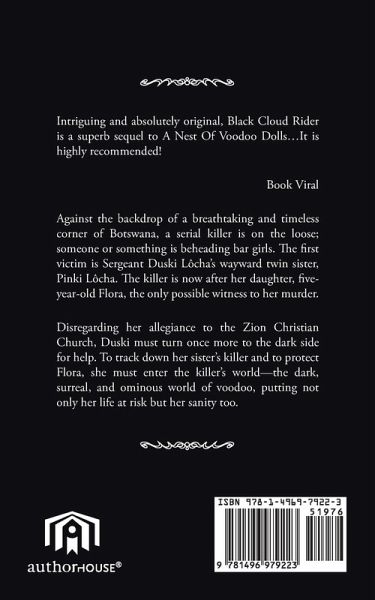 Like an unborn baby, she lay there, eyes shut tight in the amniotic-like fluid as a lone, undulating voice started singing a haunting but soothing lullaby. Against the backdrop of a breathtaking and timeless corner of Botswana, a serial killer is on the loose; someone or something is beheading bar girls. The first victim is Sergeant Duski Lôcha's wayward twin sister, Pinki Lôcha. The killer is now after her daughter, five-year-old Flora, the only possible witness to her murder. Disregarding her allegiance to the Zion Christian Church, Duski must turn once more to the dark side for help. To track down her sister's killer and to protect Flora, she must enter the killer's world-the dark, surreal, and ominous world of voodoo, putting not only her life at risk but her sanity too.