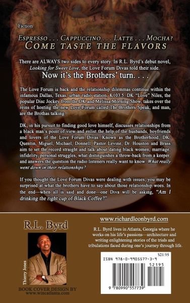 There are ALWAYS two sides to every story. In R.L. Byrd's debut novel, Looking for Sweet Love, the Love Forum Divas told their side. Now it's the Brothers' turn. . . . The Love Forum is back and the relationship dilemmas continue within the infamous Dallas, Texas, urban radio station, K103.5. DK "Love" Niles, the popular Disc Jockey from the DK and Melissa Morning Show, takes over the reins of hosting the new Love Forum called The Brothers Speak, and man, are the Brothas talking. DK, in his pursuit of finding good love himself, discusses relationships from a black man's point of view and enlist the help of the husbands, boyfriends and lovers of the Love Forum Divas. Known as the Brotherhood; DK, Quentin, Miguel, Michael, Donnell, Pastor Levine, Dr. Houston and Brass aim to set the record straight and talk about dating black women, marriage, infidelity, personal struggles, what distinguishes a throw-back from a keeper, and they answer the question the radio listeners really want to know: What really went down in their relationships? If you thought the Love Forum Divas were dealing with issues, you may be surprised at what the brothers have to say about those relationship woes. In the end-when all is said and done-one Diva will be asking, "Am I drinking the right cup of Black Coffee?"