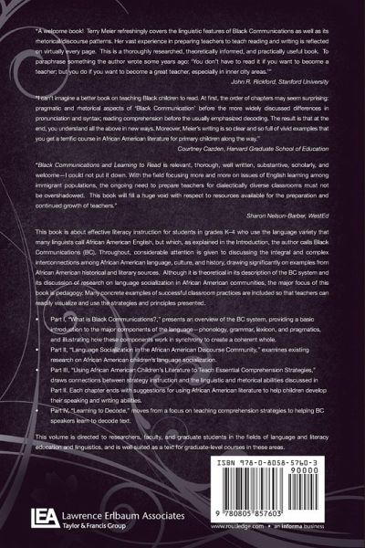 This book is about effective literacy instruction for students in grades K-4 who use the language variety that many linguists call African American English, but which, as explained in the Introduction, the author calls Black Communications (BC). Througho