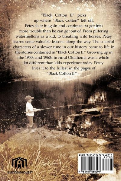 "Black Cotton II" picks up where "Black Cotton" left off. Petey is at it again and continues to get into more trouble than he can get out of. From pilfering watermellons as a kid, to breaking wild horses, Petey learns some valuable lessons along the way. The colorful characters of a slower time in our history come to life in the stories contained in "Black Cotton II." Growing up in the 1950s and 1960s in rural Oklahoma was a whole lot different than kids experience today. Petey lives it to the fullest in the pages of "Black Cotton II."