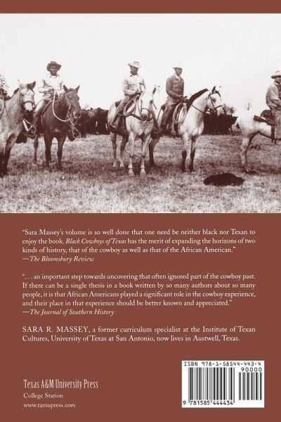 In the early days of Texas, the work of the cowhand was essential to the newly arrived settlers building a life on the frontier. The story of the Anglo cowboys who worked the ranches of Texas is well known, but much more remains to be discovered about the African American cowhands who worked side-by-side with the vaqueros and Anglo cowboys. The cowboy learned his craft from the vaqueros of New Spain and Texas when it was the northern territory of Mexico, as well as from the stock raisers of the south. Such a life was hardly glamorous. Poorly fed, underpaid, overworked, deprived of sleep, and prone to boredom and loneliness, cowboys choked in the dust, were cold at night, and suffered broken bones in falls and spills from horses spooked by snakes or tripped by prairie dog holes. Work centered on the fall and spring roundups, when scattered cattle were collected and driven to a place for branding, sorting for market, castrating, and in later years, dipping in vats to prevent tick fever. African American cowboys, however, also had to survive discrimination, bigotry, and prejudice. The lives of these cowhands tell a story of skill and grit, as they did what was necessary to gain the trust and respect of those who controlled their destiny. That meant being the best-at roping, bronc busting, taming mustangs, calling the brands, controlling the remuda, or topping off horses. From scattered courthouse records, writings, and interviews with a few of the African American cowhands who were part of the history of Texas, Sara Massey and a host of writers have retrieved the stories of a more diverse cattle industry than has been previously recorded. Twenty-five writers here recount tales of African Americans such as Peter Martin, who hauled freight and assisted insurgents in a rebellion against the Mexican government while building a herd of cattle that allowed him to own (through a proxy) rental houses in town. Bose Ikard, a friend of Charles Goodnight, went on Goodnight's first cattle drive opening the Goodnight-Loving Trail. Johanna July, a Black Seminole woman, had her own method of taming horses in the Rio Grande for the soldiers at Fort Duncan. These cowhands, along with others across the state, had an important role that too long has been omitted from most history books. By telling their stories, Black Cowboys of Texas provides an important contribution to Texas, Western, and African American history. SARA R. MASSEY is a curriculum specialist at the Institute of Texan Cultures, University of Texas at San Antonio.