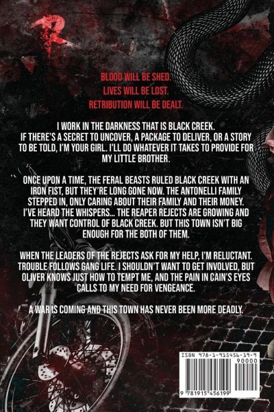 Blood will be shed. Lives will be lost. Retribution will be dealt. I work in the darkness that is Black Creek. If there's a secret to uncover, a package to deliver, or a story to be told, I'm your girl. I'll do whatever it takes to provide for my little brother. Once upon a time, The Feral Beasts ruled Black Creek with an iron fist, but they're long gone now. The Antonelli family stepped in, only caring about their family and their money. I've heard the whispers... The Reaper Rejects are growing and they want control of Black Creek. But this town isn't big enough for the both of them. When the leaders of the Rejects ask for my help, I'm reluctant. Trouble follows gang life. I shouldn't want to get involved, but Oliver knows just how to tempt me, and the pain in Cain's eyes calls to my need for vengeance. A war is coming and this town has never been more deadly. ***This omnibus compiles all four books in the dark gang-mafia romance series, Black Creek, including exclusive bonus scenes.Due to mature content, this omnibus is recommended to readers aged eighteen and over. Contains enemies-to-lovers themes and FMC will ultimately end up with multiple love interests. May contain triggers for some readers. Please read the note at the start of the book.