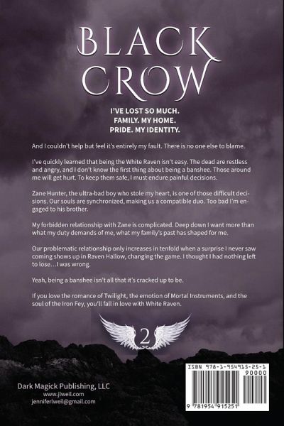 I'VE LOST SO MUCH. FAMILY. MY HOME. PRIDE. MY IDENTITY. And I couldn't help but feel it's entirely my fault. There is no one else to blame. I've quickly learned that being the White Raven isn't easy. The dead are restless and angry, and I don't know the first thing about being a banshee. Those around me will get hurt. To keep them safe, I must endure painful decisions. Zane Hunter, the ultra-bad boy who stole my heart, is one of those difficult decisions. Our souls are synchronized, making us a compatible duo. Too bad I'm engaged to his brother. My forbidden relationship with Zane is complicated. Deep down I want more than what my duty demands of me, what my family's past has shaped for me. Our problematic relationship only increases in tenfold when a surprise I never saw coming shows up in Raven Hallow, changing the game. I thought I had nothing left to lose...I was wrong. Yeah, being a banshee isn't all that it's cracked up to be.