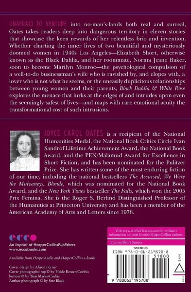 Unafraid to venture into no-man's-lands both real and surreal, Oates takes readers deep into dangerous territory in eleven stories that showcase the keen rewards of her relentless brio and invention. Whether charting the inner lives of two beautiful and mysteriously doomed women in 1940s Los Angeles?Elizabeth Short, otherwise known as the Black Dahlia, and her roommate, Norma Jeane Baker, soon to become Marilyn Monroe?the psychological compulsion of a well-to-do businessman's wife who is ravished by, and elopes with, a lover who is not what he seems, or the uneasily duplicitous relationships between young women and their parents, Black Dahlia & White Rose explores the menace that lurks at the edges of and intrudes upon even the seemingly safest of lives?and maps with rare emotional acuity the transformational cost of such intrusions.