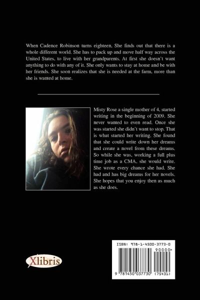 When Cadence Robinson turns eighteen, She finds out that there is a whole different world. She has to pack up and move half way across the United States, to live with her grandparents. At first she doesn't want anything to do with any of it. She only wants to stay at home and be with her friends. She soon realizes that she is needed at the farm, more than she is wanted at home.