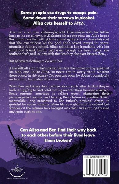 Some people use drugs to escape pain. Some drown their sorrows in alcohol. Alisa cuts herself to FEEL. After her mom dies, sixteen-year-old Alisa moves with her father back to the small town in Alabama where she grew up. Alisa hopes the familiar setting will give her grieving dad a shot at sobriety and that she can refocus on the goal she's saved toward for years: attending culinary school. Alisa rekindles her friendship with her childhood friend, Sarah, and even though it's been years, she realizes she's still in love with the first boy she ever kissed, Ben. But he wants nothing to do with her. A basketball star in the making, Ben has the homecoming queen at his side, and unlike Alisa, he never has to worry about whether there's food in the pantry. For reasons even he doesn't completely understand, he pushes Alisa away. What Ben and Alisa don't realize about each other is that they're both struggling to find solid footing as both their families crumble. Ben's parents' marriage is falling apart, shattering their picture-perfect façade, and leaving Ben's future in question. Alisa, meanwhile, long subjected to her father's physical abuse, is grateful he seems happier when his new girlfriend is around but wonders if the woman he's brought into their lives can be trusted any more than he can. Can Alisa and Ben find their way back to each other before their lives leave them broken?
