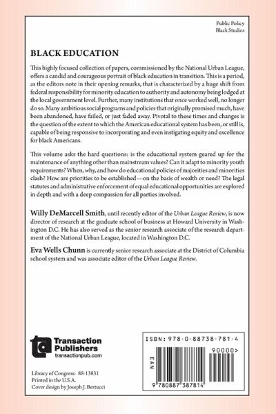 This highly focused collection of papers, commissioned by the National Urban League, offers a candid and courageous portrait of black education in transition. This is a period, as the editors note in their opening remarks, that is characterized by a huge shift from federal responsibility for minority education to authority and autonomy being lodged at the local government level. Further, many institutions that once worked well, no longer do so. Many ambitious social programs and policies that originally promised much, have been abandoned, have failed, or just faded away. Pivotal to these times and changes is the question of the extent to which the American educational system has been, or still is, capable of being responsive to incorporating and even instigating equity and excellence for black Americans. This volume asks the hard questions: is the educational system geared up for the maintenance of anything other than mainstream values? can it adapt to minority youth requirements? when, why, and how do educational policies of majorities and minorities clash? How are priorities to be established-on the basis of wealth or need? The legal statutes and administrative enforcement of equal educational opportunities are explored in depth and with a deep compassion for all parties involved.