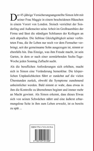 Der 45-jährige Versicherungsangestellte Simon lebt mit seiner Frau Maggie in einem bescheidenen Häuschen in einem Vorort von London. Stoisch verrichtet der Sonderling und Außenseiter seine Arbeit im Großraumbüro der Firma und lässt die ständigen Schikanen der Kollegen an sich abprallen. Die lieblose Gleichgültigkeit seiner verfetteten Frau, die ihr Leben nur noch vor dem Fernseher verbringt, seit der gemeinsame Sohn ausgezogen ist, nimmt er ebenfalls hin. Das Einzige, was ihm Freude macht, ist sein Garten, in dem er nach einer zermürbenden Sechs-Tage-Woche jeden Sonntag Zuflucht sucht.Als die beruflichen Anforderungen sich erhöhen, macht sich in Simon eine Veränderung bemerkbar. Die körperlichen Unpässlichkeiten führt er zunächst auf die vielen Überstunden zurück, obwohl die Symptome zunehmend unheimlicher werden. Bald nimmt er wahr, dass etwas in ihm die Kontrolle zu übernehmen beginnt und immer mehr an Macht gewinnt. Als Simon erkennt, dass dieses Etwas sich von seinen Schwächen nährt und eine äußerst erbarmungslose Seite in ihm zum Leben erweckt, ist es bereits zu spät ...