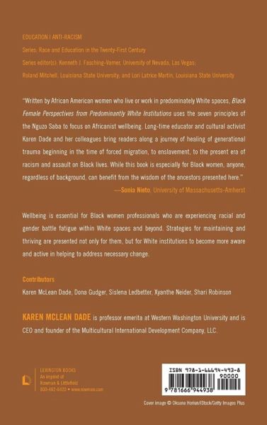 Black Female Perspectives from Predominantly White Institutions: Strategies for Wellbeing in White Spaces and Beyond supports Black women working in predominantly White spaces and further educates their institutions, non-Black counterparts, students, and families in developing an understanding of the challenges and needs of Black women professionals. In the face of world challenges, the authors contend that anti-Blackness continues to be an infectious pandemic that is devastating Black lives around the globe. Black women professionals, who are often at the forefront of racial and gender justice movements at their institutions, have been especially burdened. Such devotion is daunting and often drains the wellbeing of Black women. Institutions frequently ignore the cry of racial battle fatigue that Black employees, and members of communities of color, are experiencing on a large scale. This has become a serious health risk for many Black people, particularly Black women professionals. The authors assert that it is important to use "for us by us" concepts when addressing racial battle fatigue. Therefore, this book is framed using several African descent-centered knowledge systems. It offers strategies to enhance the wellbeing of Black women, such as ancestral wisdom, addressing anti-Blackness, identities and female life cycles, and planting seeds grounded in love. Although the book focuses on Black women, it is encouraged reading for all. It is believed that greater awareness will spark greater change within our society.