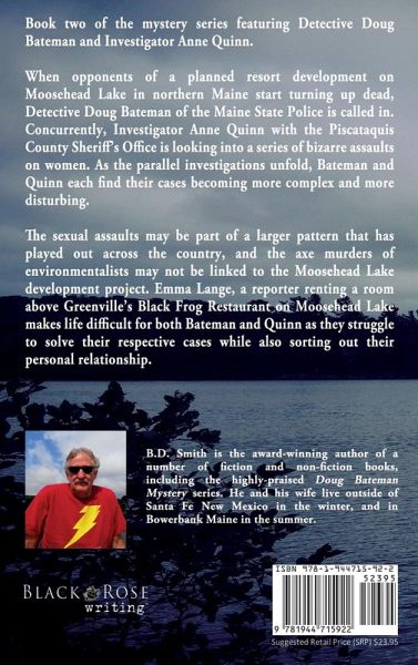 Maxy Awards "Best Thriller" "Get in on the ground floor of this engrossing small-town crime thriller. Highly recommended for fans of C.J. Box and Craig Johnson." -Best Thrillers Prepare for a heart-pumping mystery that will keep you on the edge of your seat! In book two of the Doug Bateman Mystery, things get even more complicated as Detectives Bateman and Quinn tackle two different cases that may be more connected than they initially thought. When opponents of a resort development on Moosehead Lake in northern Maine start turning up dead, Bateman is called in to investigate. Meanwhile, Quinn is looking into a series of bizarre assaults on women. As they delve deeper into their respective cases, they uncover a complex web of clues that lead them down unexpected paths. Could the sexual assaults be part of a larger pattern? And are the axe murders of environmentalists really linked to the Moosehead Lake development project? With the help of Emma Lange, a reporter who is renting a room above Greenville's Black Frog Restaurant on Moosehead Lake, Bateman and Quinn must unravel the truth before it's too late. As the stakes get higher and their personal relationship becomes more complicated, Bateman and Quinn must navigate treacherous waters to solve the cases before more innocent lives are lost. If you love gripping mysteries with complex characters and unexpected twists, then you won't want to miss this thrilling novel by B.D. Smith. Order your copy of book two in the Doug Bateman Mystery series today and discover why fans are raving about this exciting new author!