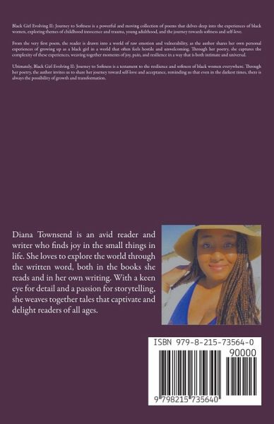 Black Girl Evolving II: Journey to Softness is a powerful and moving collection of poems that delves deep into the experiences of black women, exploring themes of childhood innocence and trauma, young adulthood, and the journey towards softness and self-love. From the very first poem, the reader is drawn into a world of raw emotion and vulnerability, as the author shares her own personal experiences of growing up as a black girl in a world that often feels hostile and unwelcoming. Through her poetry, she captures the complexity of these experiences, weaving together moments of joy, pain, and resilience in a way that is both intimate and universal. Ultimately, Black Girl Evolving II: Journey to Softness is a testament to the resilience and softness of black women everywhere. Through her poetry, the author invites us to share her journey toward self-love and acceptance, reminding us that even in the darkest times, there is always the possibility of growth and transformation.