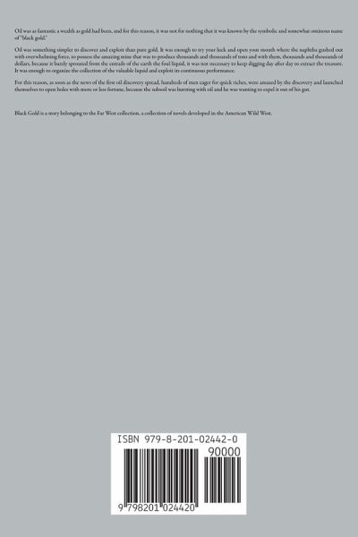 Oil was as fantastic a wealth as gold had been, and for this reason, it was not for nothing that it was known by the symbolic and somewhat ominous name of "black gold." Oil was something simpler to discover and exploit than pure gold. It was enough to try your luck and open your mouth where the naphtha gushed out with overwhelming force, to possess the amazing mine that was to produce thousands and thousands of tons and with them, thousands and thousands of dollars, because it barely sprouted from the entrails of the earth the foul liquid, it was not necessary to keep digging day after day to extract the treasure. It was enough to organize the collection of the valuable liquid and exploit its continuous performance. For this reason, as soon as the news of the first oil discovery spread, hundreds of men eager for quick riches, were amazed by the discovery and launched themselves to open holes with more or less fortune, because the subsoil was bursting with oil and he was wanting to expel it out of his gut. Black Gold is a story belonging to the Far West collection, a collection of novels developed in the American Wild West.