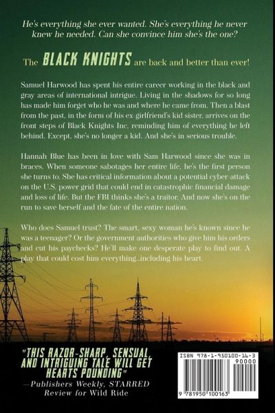 He's everything she ever wanted. She's everything he never knew he needed. Can she convince him she's the one? The Black Knights are back and better than ever! Samuel Harwood has spent his entire career working in the black and gray areas of international intrigue. Living in the shadows for so long has made him forget who he was and where he came from. Then a blast from the past, in the form of his ex-girlfriend's kid sister, arrives on the front steps of Black Knights Inc, reminding him of everything he left behind. Except, she's no longer a kid. And she's in serious trouble. Hannah Blue has been in love with Sam Harwood since she was in braces. When someone sabotages her entire life, he's the first person she turns to. She has critical information about a potential cyber-attack on the U.S. power grid that could end in catastrophic financial damage and loss of life. But the FBI thinks she's a traitor. And now she's on the run to save herself and the fate of the entire nation. Who does Samuel trust? The smart, sexy woman he's known since he was a teenager? Or the government authorities who give him his orders and cut his paychecks? He'll make one desperate play to find out. A play that could cost him everything...including his heart. "A first-rate thrill ride."-Publishers Weekly, STARRED Review for Thrill Ride "This razor-sharp, sensual, and intriguing tale will get hearts pounding"-Publishers Weekly, STARRED Review for Wild Ride "Deft characterization, skillful pacing, touches of humor, and red-hot love scenes rev up this highly recommended roller-coaster." -Publishers Weekly, STARRED Review for In Rides Trouble