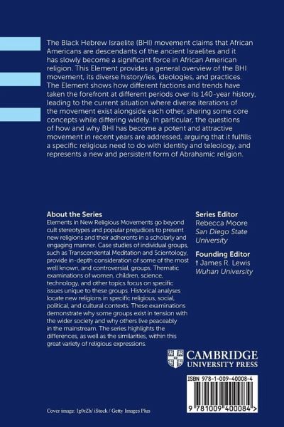 This Element provides a general overview of the Black Hebrew Israelite movement, its diverse history/ies, ideologies, and practices. It shows how different factions and trends have taken the forefront at different periods over its 140-year history.