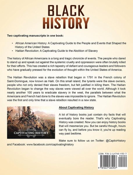 Explore Some of the Most Important Events and People in Black History Two captivating manuscripts in one book: African American History: A Captivating Guide to the People and Events that Shaped the History of the United States Haitian Revolution: A Captivating Guide to the Abolition of Slavery The history of African Americans is a long and tragic chronicle of events. The people who dared to stand up and speak out against the systemic cruelty and oppression were often brutally killed for their efforts. This has created a rich tapestry of defiant and courageous leaders and followers who have gradually pressed for the evolution of thought within the United States of America. Discover personal stories, struggles and achievements of people like: Harriet Tubman Martin Luther King, Jr. Malcolm X Rosa Parks Frederick Douglass And many more Some of the topics covered in the first part of this book include: The First Africans in America How Slaves Were Viewed African Americans’ Contribution to Literature, Art, and Music The Fight for Independence Fugitive Slave Laws The Gabriel Prosser Revolt The Denmark Vesey Revolt The Beginning of the End of Slavery The Rallying Movements and Moments, and the Civil War Continued Oppression in Freedom and the Early Struggles for Equality Exodus from the South and the Fight for Education within the South African Americans Begin to Stand Together Founding of Something New Through Pain and Self-Expression Integration and the Civil Rights Movement Those Who Fought for Their Inalienable Rights in a Country That Would Deny Them And a Great Deal More that You don't Want to Miss out on! The Haitian Revolution was a slave rebellion that began in 1791 in the French colony of Saint-Domingue, now known as Haiti. On this small island, the tyrants were the slave owners, people who not only denied their slaves freedom, but felt justified in killing them. The Haitian Revolution began to change the way slaves were viewed all over the world. Although it took nearly another 100 years to eradicate slavery in the west, the parallels between what the Americans and French had done to the slaves was impossible to ignore. The Haitian Revolution was the first and only time that a slave rebellion resulted in a new state. Some of the topics covered in the second part of this book include: The Wealth from Saint-Domingue Beginning of the End of the French Colony Planning of One of the Most Historic Revolutions in History The Revolution Begins The Revolution Spreads Ripples of Events in Europe The Abolishment of Slavery and the British Response Toussaint Louverture’s Rise to Power The Defeat of Britain and a Newfound Respect Napoleon’s Rise and Its Initial Effect on Saint-Domingue The End of the Revolution Lasting Effects – Beyond the Island Haiti Today And much more! Scroll to the top and select the "Add to Cart" button to learn more about black history!