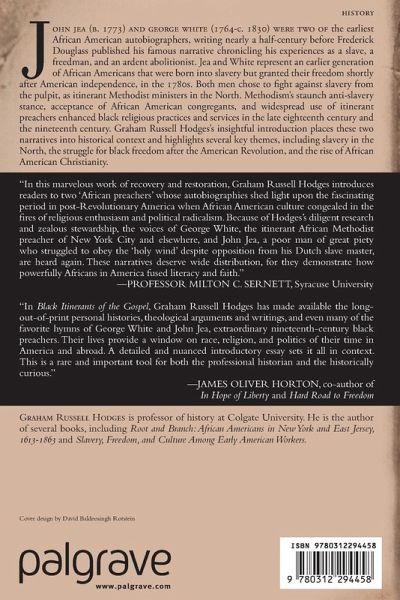 "In Black Itinerants of the Gospel, Graham Russell Hodges has made available the long-out-of-print personal histories, theological arguments and writings, and even many of the favorite hymns of George White and John Jea, extraordinary nineteenth-century black preachers. Their lives provide a window on race, religion, and politics of their time in America and abroad. This is a rare and important tool for both the professional historian and the historically curious." - James Oliver Horton, co-author of In Hope of Liberty and Hard Road to Freedom