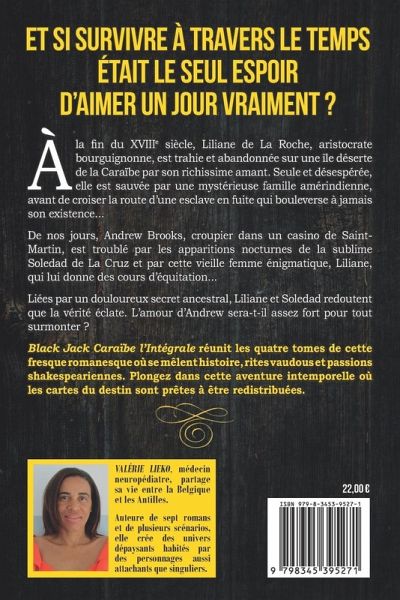 ♥ Une romance envoûtante... Quand l' Amour, la Trahison et le Vaudou se croisent...★ Je m'appelle Liliane de La Roche, je suis née en Bourgogne au milieu du XVIIIe siècle. Certains prétendent que je vis aujourd'hui parmi vous... Tout commence lorsque je m'égare sur une île déserte de La Caraïbe. J'ai réussi à survivre, mais mon coup de foudre pour Andrew Brooks, dans ce casino de Saint-Martin, fait basculer mon existence... Comment réagirait-il s'il découvrait pourquoi il ne peut me rencontrer qu'une fois la nuit tombée ? Que ferait-il s'il devinait sous quelle forme je vis le jour ? J'ai peur pour moi, mais aussi pour mon amie, Beauté des Isles, et pour nos descendants qui protègent notre douloureux secret... ★ ★ ★ Laissez-vous emporter dans cette saga mystérieuse, intimiste, où passé et présent s'imbriquent, une histoire basée sur des faits très étranges que beaucoup jurent être vrais ! ♥ ♥ ♥ Ce livre contient les quatre tomes de la série originale Black Jack Caraïbe: La Dame de Coeur, La Dame de Pique, le Roi de Carreau et l'As de Trèfle.
