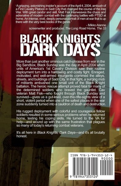 More than just another ominous catch-phrase from war in the Big Sandbox, Black Sunday was the day in April 2004 when units of America’s 1st Cavalry Division saw their routine deployment turn into a harrowing and costly fight. Enraged, motivated, and well-armed insurgents crammed the alleys, streets, and buildings of Sadr City. In that fight, a surging mob of militants ambushed one small unit of the Black Knight battalion. The heroic rescue attempt proved fatal for many of the determined soldiers who braved the gauntlet. Cav veteran Matt Fisk—who fought through Black Sunday and survived—gives us a gut-level, over-the-rifle-sights view of a short, violent period when one of the safest places in the war zone suddenly turned into a cauldron of death and destruction. His rugged deployment with colorful and courageous fellow soldiers resulted in some serious problems when he returned home, testing his coping skills. He turned to the VA for help—and wound up with the same frustration that plagues so many of today’s returning combat veterans. It’s all here in Black Knights, Dark Days—and it’s all brutally honest.