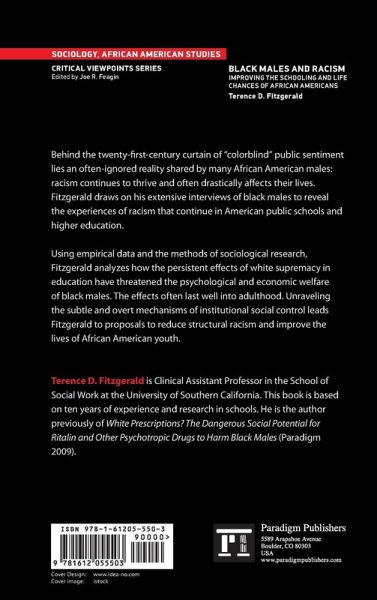 Behind the twenty-first-century curtain of "colorblind" public sentiment lies an often-ignored reality shared by many African American males-racism continues to thrive and often drastically affects their lives. Fitzgerald draws on his extensive interviews of black males to reveal the experiences of racism that continue in public schools and in American higher education. Using empirical data and the methods of sociological research, Fitzgerald analyzes how the persistent effects of white supremacy in education have threatened the psychological and economic welfare of black males. The effects often last well into adulthood. Unraveling the subtle and overt mechanisms of institutional social control leads Fitzgerald to proposals to reduce structural racism and improve the lives of African American youth.