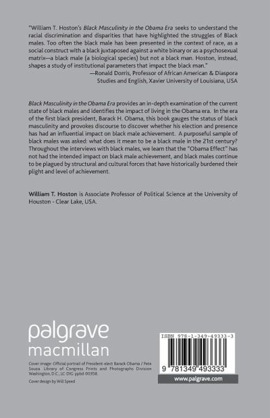 "William Hoston's Black Masculinity in the Obama Era seeks to understand the racial discrimination and disparities that have highlighted the struggles of Black males. Too often the black male has been presented in the context of double-consciousness; race as a social construct in congruence with the dichotomy of skin-color, a black juxtaposed against a white binary; a psychosexual matrix a black male (a biological species) but not a black man; and psychohistory a study of the changing meaning of symbols. Hoston, instead, shapes a study of institutional parameters that impact the black man." Ronald Dorris, Professor of African American & Diaspora Studies and English, Xavier University of Louisiana, USA